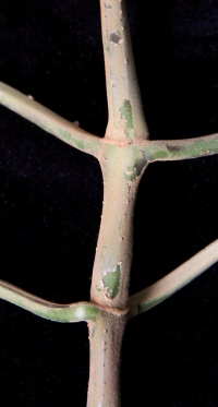 FIELD MARKS – opposite, simple leaves, within a pair of leaves one is often larger (anisophylly), swollen nodes, often with horizontal scars at nodes between the petioles.