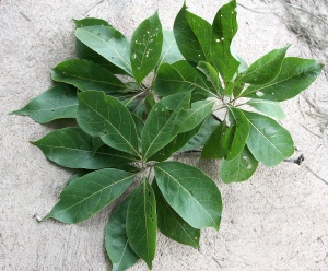 Cordia alliodora “laurel” – characteristic branching, nodes are swollen and house ants, grows tall with whitish bark due to lichens, canopy is sparse, laminated live bark, important timber tree.