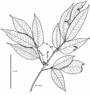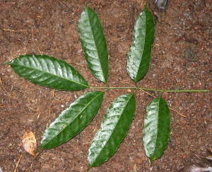Description: Burseraceae have the strongest vegetative odor in the Sapindales, a powerful and pleasant incense scent. It is perceptible even from a small rip in the leaf. All the species here at La Selva (and indeed, almost all plants in this family) have pinnately compound leaves. The most common genus here, Protium, is easy to distinguish: each petiole has a double pulvinulus (i.e., the stalk of each leaflet is swollen at both ends). The fruits of Protium are so full of essential oils that they can actually be lit on fire!