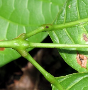 Protium – swollen rachis at leaflets, bitumid petiolules (swollen pulvinus at both ends, shaped like a femur bone), strong turpentine odor, fruits reportedly flammable.