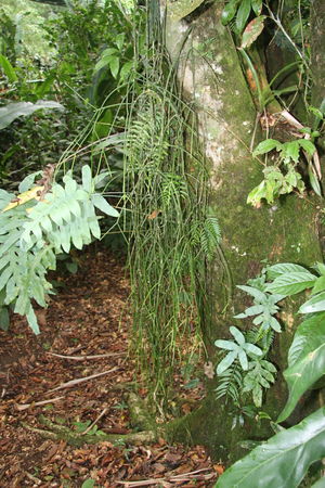 Description: All the Cactaceae in the lowland tropical forests of Costa Rica are epiphytic, though some grow on stumps or fallen logs close to the ground. They can be recognized by their succulent green photosynthetic stems and their highly reduced or absent leaves. Some genera (e.g., Rhipsalis) have cylindrical stems, while others (e.g. Epiphyllum) have stems that are laterally flattened.