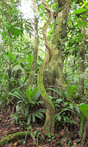 Bauhinia – simple bilobed leaves resembling the split hoof of a cow, lianas with undulating stems have earned the common name “monkey ladder”.