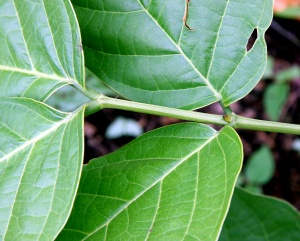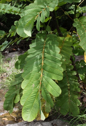 Description: the Caesalpinioideae of this region are all woody, either trees or lianas. Leaf shape in this subfamily is variable. All even-pinnate legumes without glands on the leaves are Caesalpinioideae (even-pinnate means that the compound leaf lacks a terminal leaflet). Caesalpinioid leaves can also be bifid (e.g., Bauhinia) or bipinnately compound (though none of the genera in this area are). The flowers of Caesalpinioideae are generally only subtly asymmetrical.