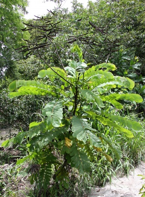 Senna- paripinnate leaves, horn-shaped nectaries between leaflets.