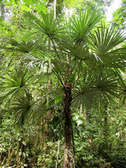 Cryosophila is a subcanopy palm (to 10 m) characterized by a trunk that is covered with branched spines and leaves that are palmate with white undersides. Photo by R. Aguilar courtesy of La Flora Digital de la Selva.