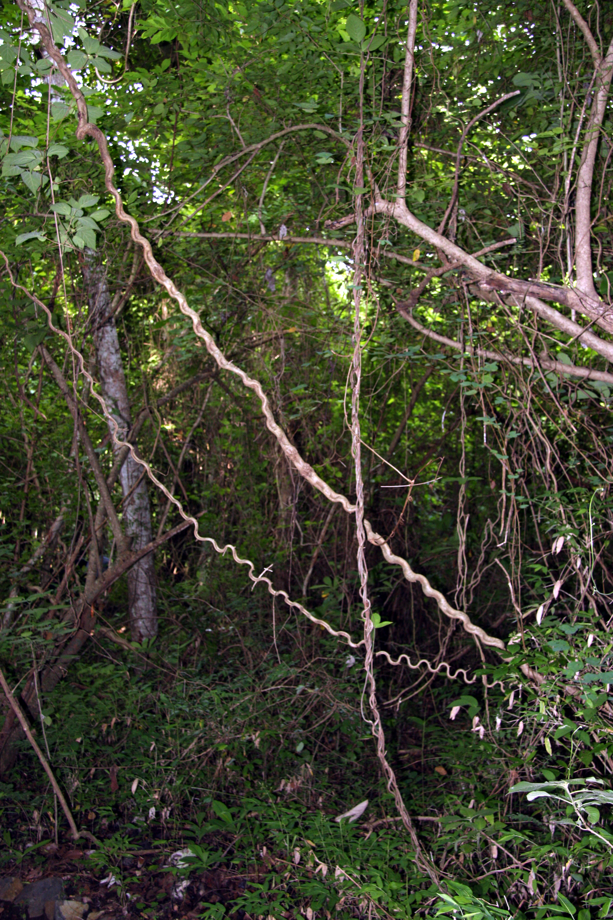 Monkey ladder lianas growing in the seasonally dry forest of Lomas Barbudal preserve in Guanacaste.