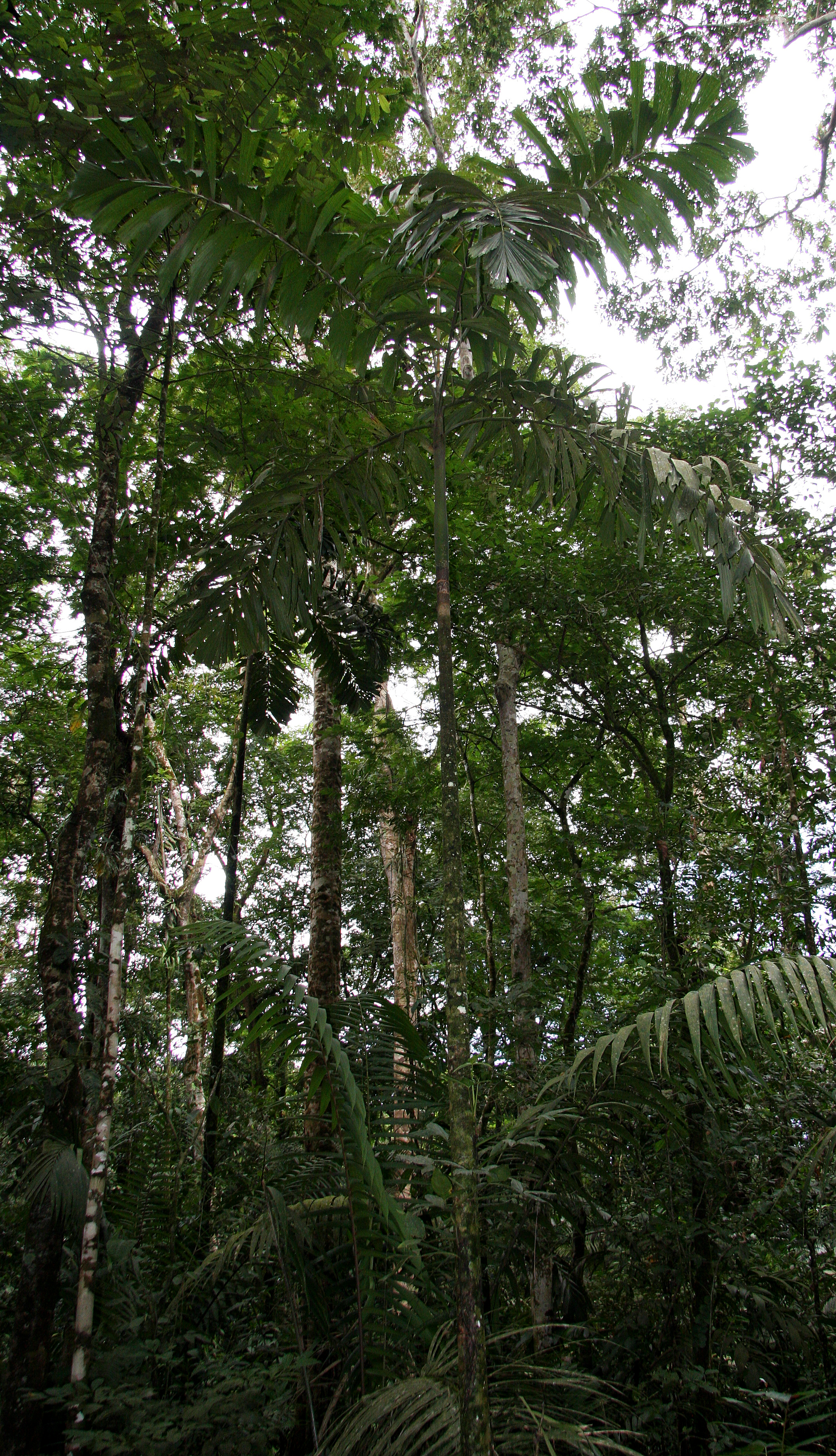 Socratea is a subcanopy tree that can reach up to 30 m in height. Note the prominent crownshaft just below the leaves.