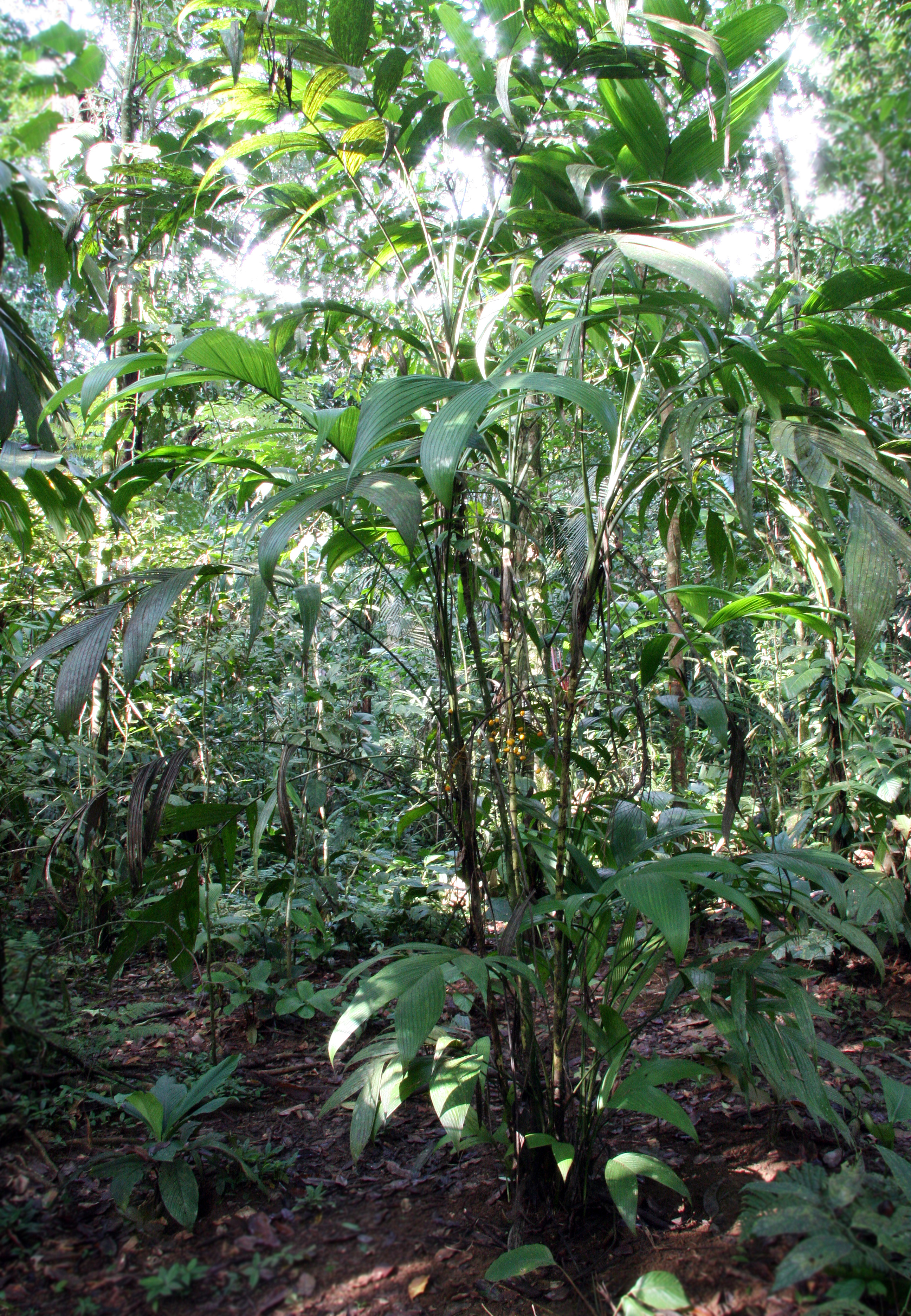 Synechanthus warscewiczianus is a clonal palm consisting of clusters of stems.
