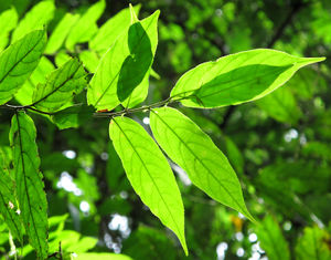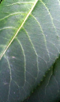 FIELD MARKS – alternate, simple leaves with serrate or crenate leaf margins, tertiary veins perpendicular to primary vein. Three patterns are common: 1. Distichous leaf arrangement with pellucid dots and dashes (think Morse Code!), 2. Distichous without dots and dashes, 3. Spirally arranged leaves with nectaries at the base of the blade.