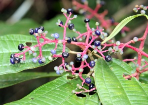 Trees (usually understory)/ árboles, usualmente del subdosel: Bellucia (1), Conostegia (some of the 8), Miconia (some of the 28), Mouriri (1).