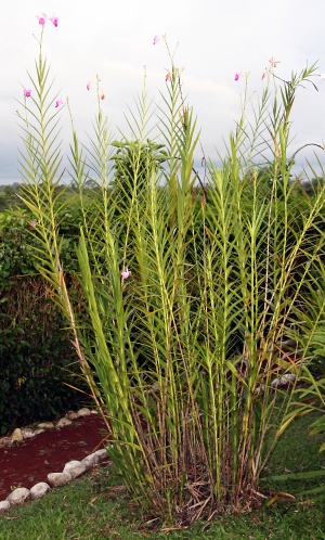 Description: A huge family of plants (> 20,000 species worldwide), all herbaceous, some climbing. The leaves are alternate and often distichous, usually with a basal sheath and a storage structure called a pseudobulb at the base. Orchid flowers are almost always zygomorphic (i.e., bilaterally symmetrical), and many display bizarre and unique adaptations to attract pollinators (Endress 1994). Some species mimic other nectar-bearing flowers, without bearing nectar themselves. The pollinators are tricked into carrying their pollen without a reward. Some species mimic female bees or wasps. The male pollinates the flower as he attempts to copulate with it. Other species have elaborate mechanisms that trap the pollinator and send it tumbling down a slide, where the pollen is fixed onto the pollinator’s body. Orchid pollen is carried in packets called pollinia, ensuring that all the ovules of one flower are pollinated by a single parent. Mutations can spread very rapidly in this sexual system, and this may have contributed to the rapid speciation in the family (Judd et al. 2002). The seeds of orchids are tiny, almost microscopic, and wind-dispersed. Orchids depend on mycorrhizal fungi as symbionts, and will not even germinate without fungi present (Bell 1991). Gentry (1993) includes an excellent key to the genera of Orchidaceae.