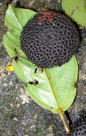 Apeiba membranacea – fruits resemble a sea urchin with a dense coating of short spines.